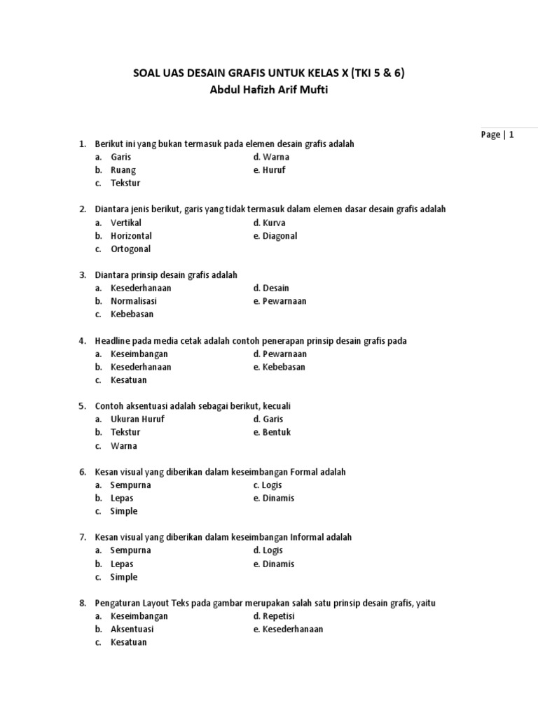 Free Pdf 40 Contoh Soal Dasar Desain Grafis Beserta Jawabannya Kelas 10 Semester 2 Templatekita Com