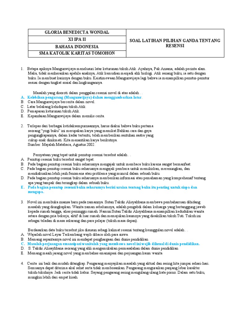 5262021 Soal Resensi Docx. Soal soal bahasa indonesia tentang resensi. 3132019 Contoh Soal PG Bahasa Indonesia K13 Kelas XI Semester 2 Beserta JawabanPart-6 merupakan posting lanjutan soal PG B.
