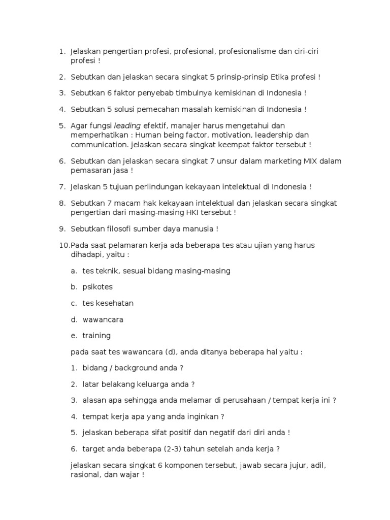 5 soal soal tersebut membahas hakikat pendidikan pendidikan menurut para ahli guru sebagai suatu profesi tentang program ppg bagi guru dan degradasi moral anak. Soal Essay dan Pilihan Ganda Etika Profesi Kelas dan Jawaban Kunci Jawaban Soal Tentang Etika Profesi 1 E 11 D 21 C 31 D 41 B 2 E 12 B 22 D 32 D 42 B 3 E 13 D 23 C 33 D 43 B 4 E 14 D 24 B 34 D 44 A 5 A 15 B 25 E 35 D 45 B. Oleh admin diposting pada 27 agustus 2017.