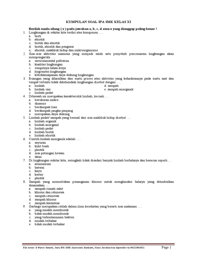Gunakan tombol download yang tersedia kemudian buka Link download yang muncul Pengasihan Inna Anna Amanna Umum. Ilmu pengetahuan alam adalah salah satu mata pelajaran yang belajar dalam kehidupan sehari-hari tentang keindahan alam dengan aspek budaya di daerah tersebut. Contoh Soal IPA Kelas 11 SMAMASMK dan Kunci Jawabannya.