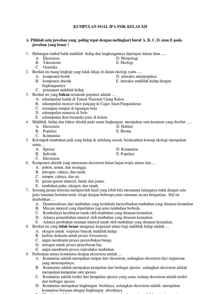 Kumpulan Soal Ipa Smk Kelas X Xii