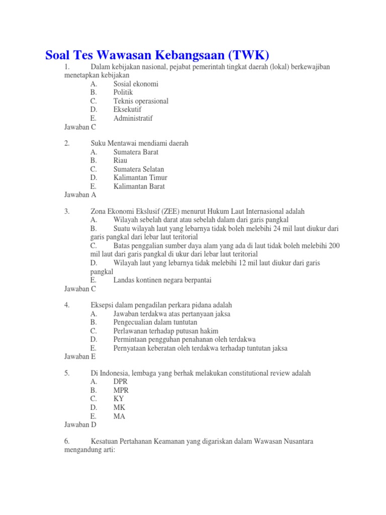 Pdf Contoh Soal Dan Jawaban Tes Wawasan Kebangsaan Twk Mr Pledge Academia Edu