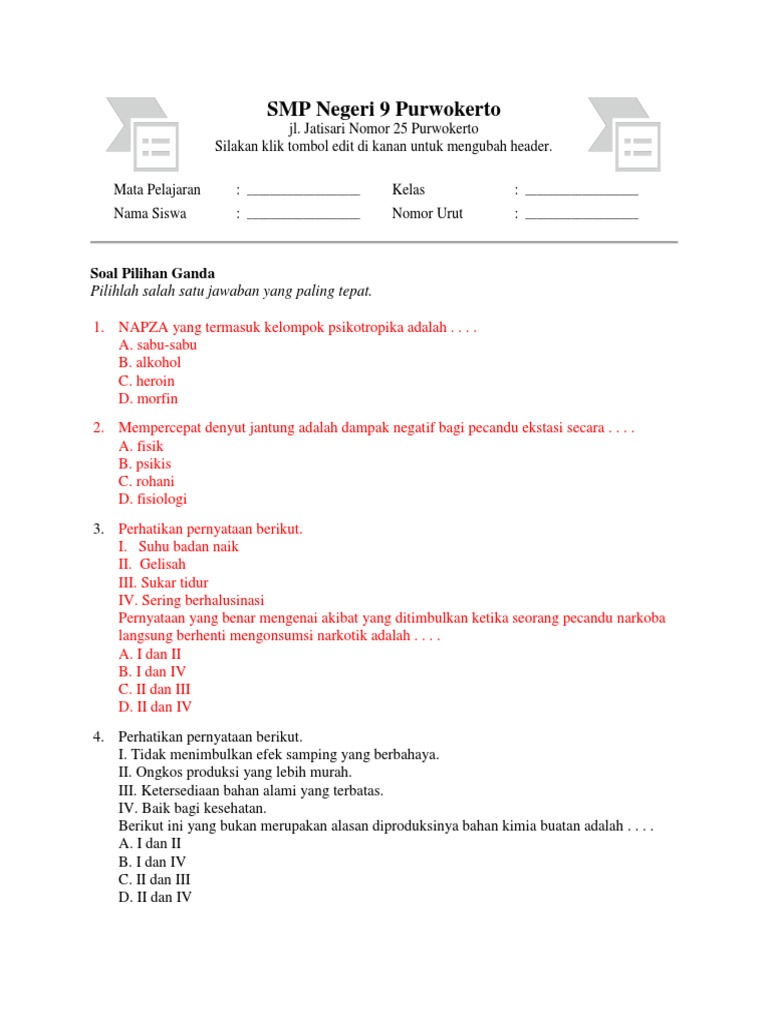 Contoh Soal Zat Aditif Adiktif Psikotropika Smp 2 Idschool