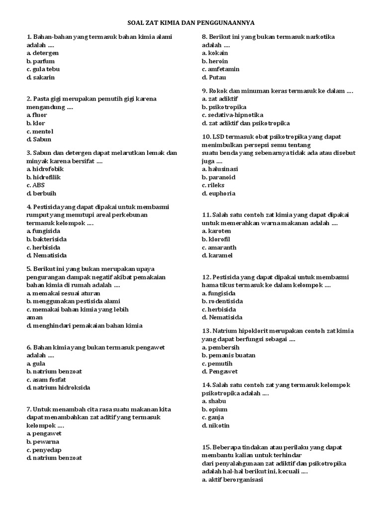 Soal Pilihan Ganda Zat Aditif Dan Adiktif Guru Paud