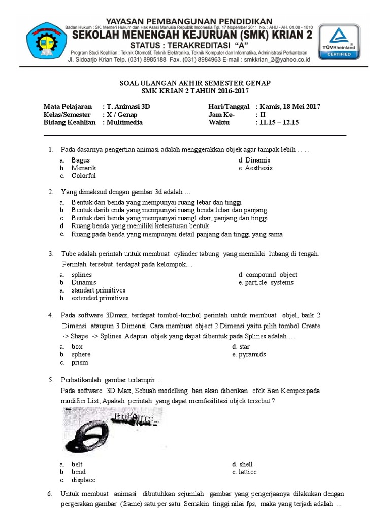 Soal dan jawaban animasi 3 dimensi kelas 11 semester 2. Di soal kelas 2 tema 4 hidup bersih dan sehat merupakan tema yang sudah direvisi jadi bapak ibu jangan kwatir karena soal tema 4 kelas 2 sd kurikulum 4. Contoh soal dan jawaban animasi 3 dimensi kelas 11. Get Your Order Fast.