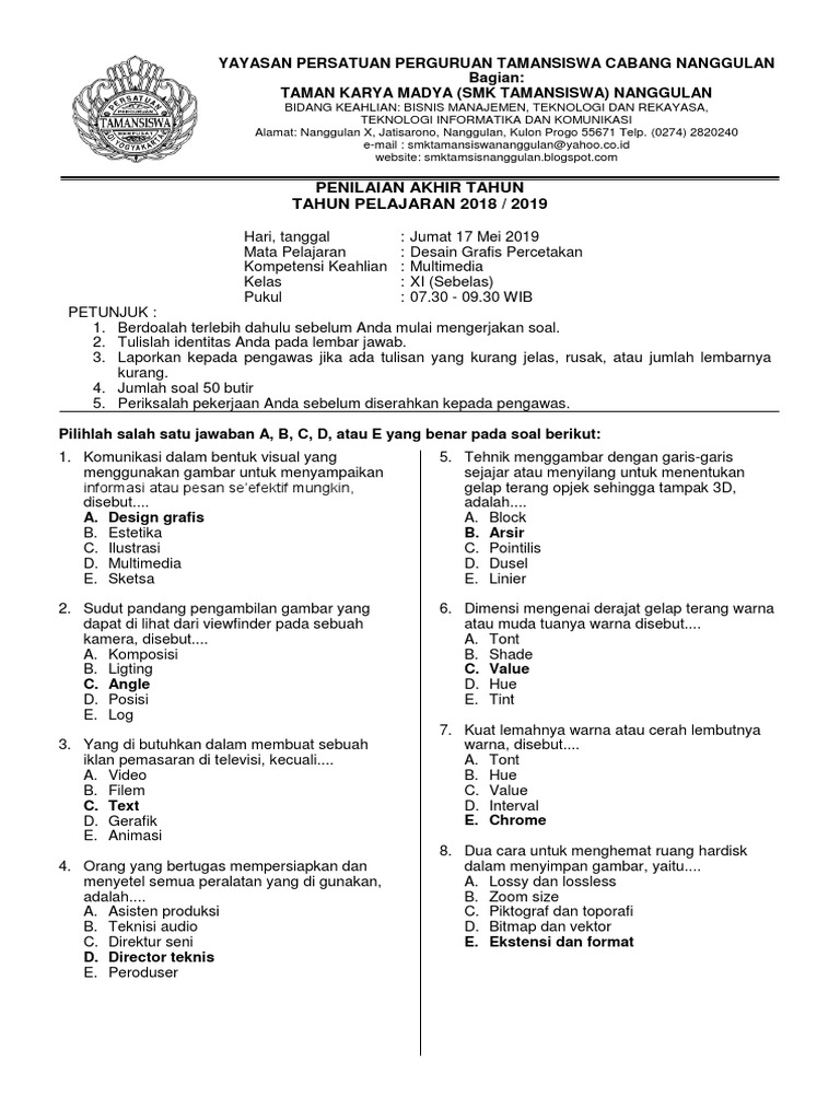 Soal Uas Gasal Kelas 11 Animasi 2d Dan 3d Mei 2019