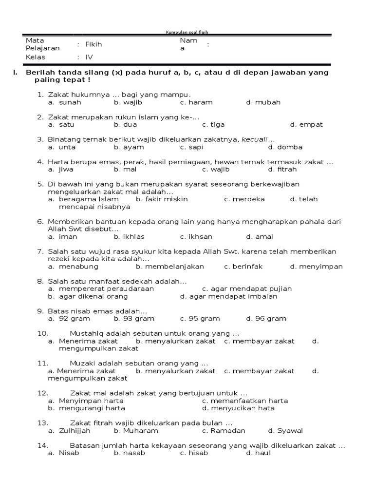 Soal Zakat Mal - Tentunya ini akan menjadi pelajaran yang sangat berarti sekali untuk kamu semua yang lagi mencari Soal Zakat Mal tersebut di sini. 2282021 Soal Dan Jawaban Tentang Zakat Soal zakat tentunya ini akan menjadi pelajaran yang sangat berarti sekali untuk kamu semua yang lagi mencari soal zakat tersebut di sini. Jul 20 2014 Total Attempts.